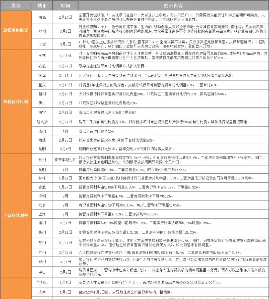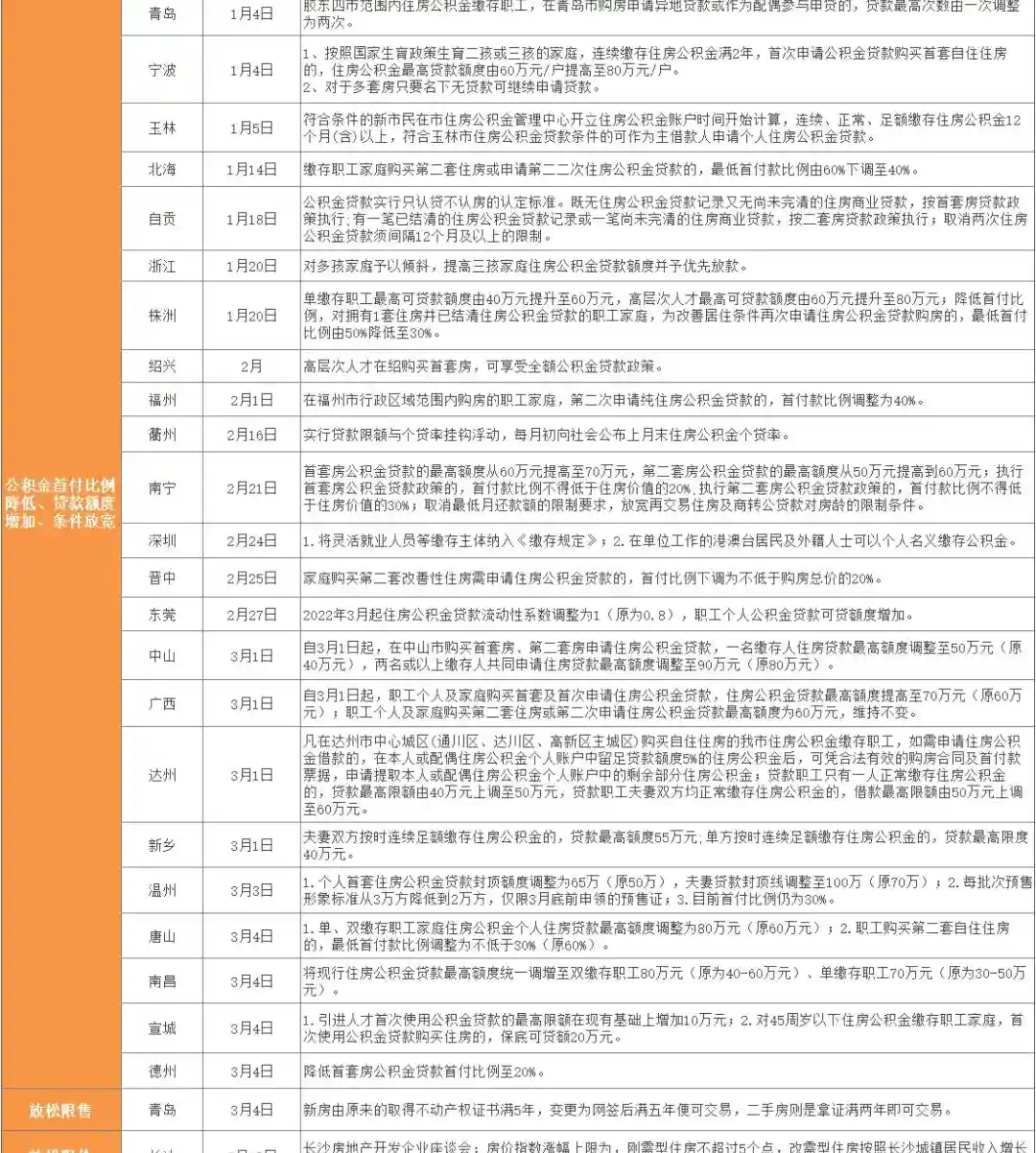 附:55座城市房地产政策松动汇总表