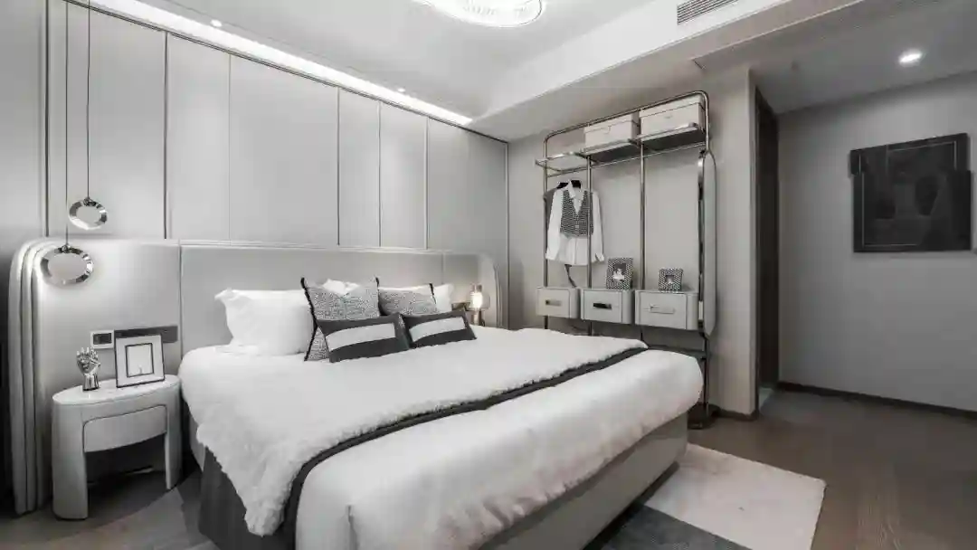 其次,两个豪华套房式卧室的设计让人直呼奢华。两个卧室均带有将大飘窗、卫浴、衣帽间,浓浓的尊贵感,由此而生。