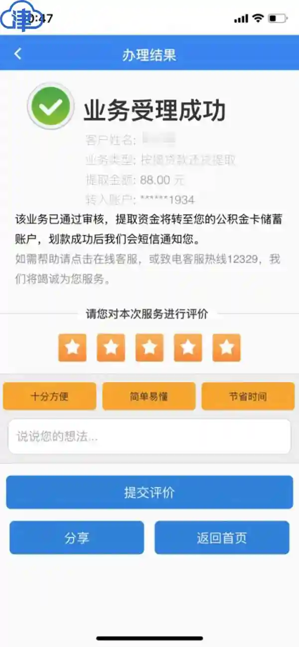 举例:如果张先生的还款日为每月的15日,那么,张先生在15日还完款后的第二天(16日),银行会将张先生的还款信息传给公积金管理中心,第三天(17日),张先生便可登陆市公积金中心官网、天津住房公积金APP或官方微信公众号进行公积金提取业务。