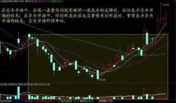 在空头市场中,出现一波量价均能突破前一波高点的反弹时,往往表示空头市场的结束;在多头市场中,价创新高后若成交量量再创新高时,常常表示多头市场的结束,空头市场即将开始。