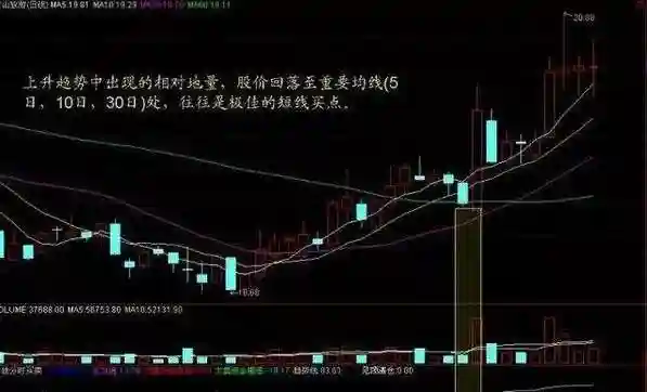 上升趋势中出现的相对地量,股价回落至重要均线(5日,10日,30日)处,往往是极佳的短线买点。