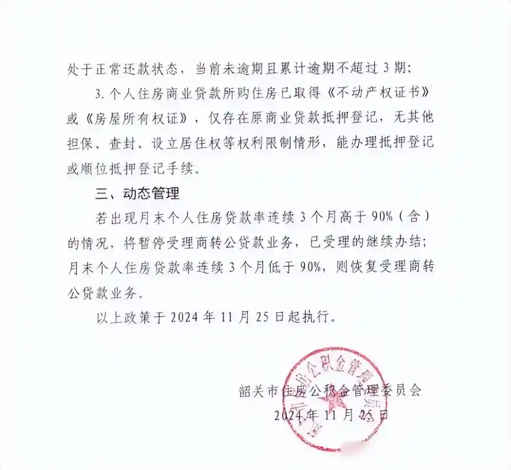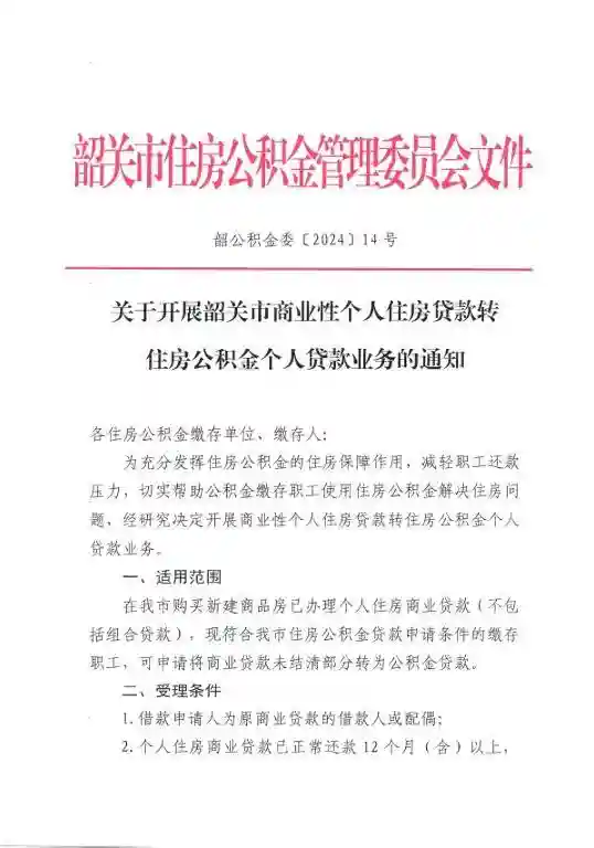 除了广州以外,韶关市也发布了相关文件,比如如果已经办理了商业性个人住房贷款的人士,可以将本人或者配偶名下未结清部分转为住房公积金贷款。