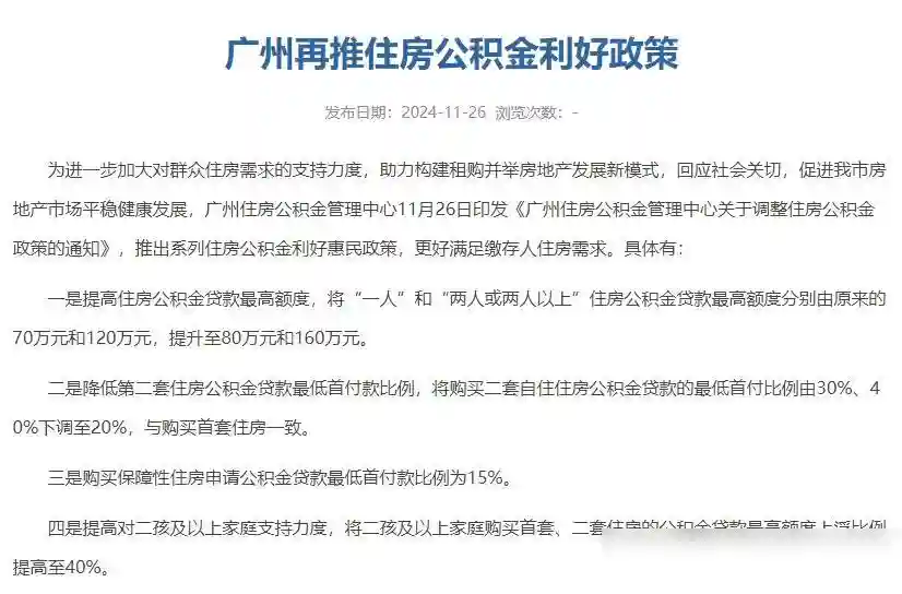 为了更好的调节市场上的房价,广州市在先前发表了有关人员购买房屋的住房公积金的文件,其中指出将住房公积金的贷款额度进行上限的提升,并且楼市也发生其他方面的变化。