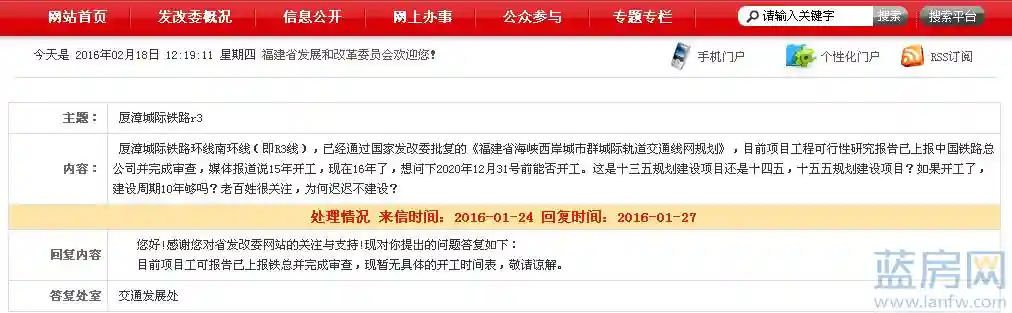 近日,福建省发改委公布了针对网友提出的“厦漳海底隧道和厦漳城际铁路R3线建不建”的信件处理情况。
