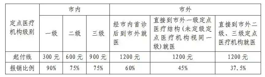 参保人在定点医疗机构住院产生的符合政策范围的医疗费用,除乙类药先支付10%以外(不含生育保险),按以下规定报销: