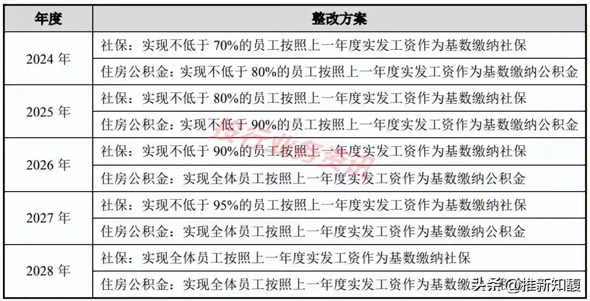 2025年10月,发行人针对部分员工未足额缴纳社会保险和住房公积金的事项召开了董事会和股东大会并作出了专项承诺,计划全公司逐步提高社保、住房公积金缴纳基数,在公司上市之日起五年内达到员工的社会保险缴纳基数与员工上年度实发工资一致,在公司上市之日起三年内达到员工的住房公积金缴纳基数与员工上年度实发工资一致,以符合《社会保险法》《住房公积金管理条例》规定的缴费标准。具体规范整改方案如下: