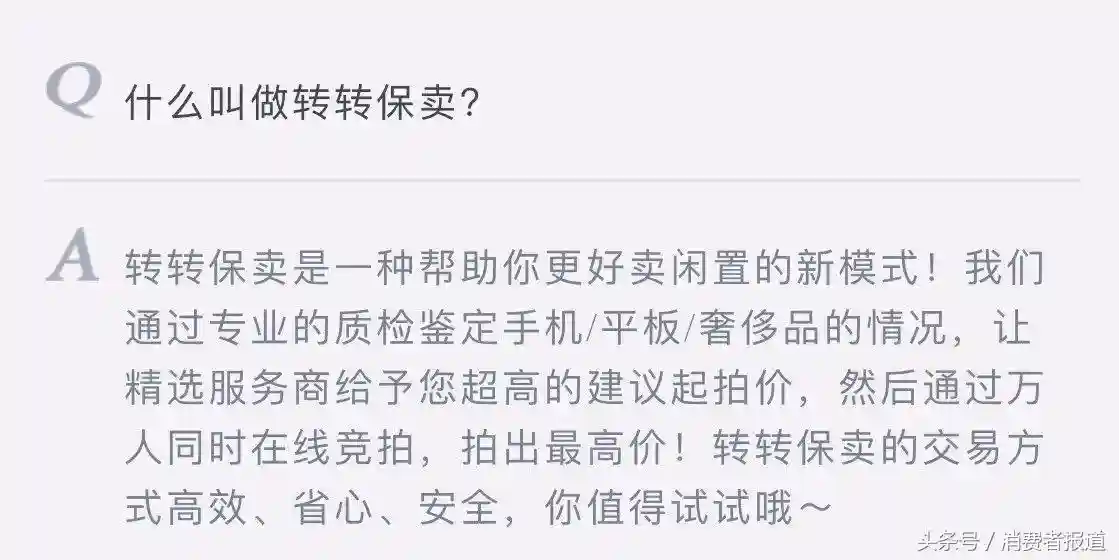 经营拍卖的子公司或无拍卖资质2017年年底,转转推出“帮卖”服务,宣称卖家用户可把想卖掉的手机通过转转APP下单,顺丰快递上门收件派至当地验机质检中心,待检测手机外壳、机身、屏幕、卡槽等指标后出具验机报告,卖家可选择卖或不卖。然而,当前版本的转转APP内已无“帮卖”字样。知情人告诉记者,帮卖、保卖、拍卖、竞买和竞拍实则为同一个意思,若硬要区分,保卖针对卖方,竞拍针对买方。