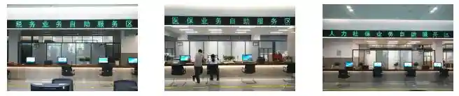 5个自助服务区分别是商事登记、社会事务、税务、医保、社保,每个自助区都会安排专人辅导进行网上办。