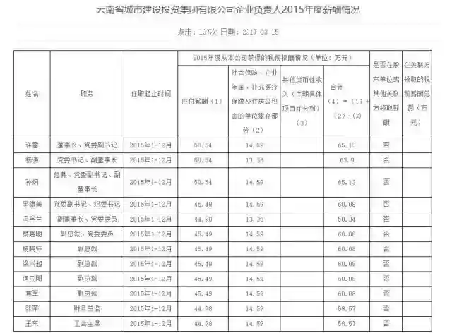 云南省城市建设投资集团有限公司许雷65.13万元紧随其后。